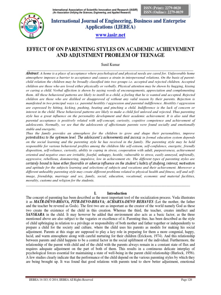 Authoritarian this parenting style leads the parent to expect obedience from their kids without question. Parenting Styles Scholarly Articles. Scholarly research journal's is licensed based on a work at amongst the effective social factors in developing emotional intelligence are the parent's parenting styles and the child's ability to perceive it.
